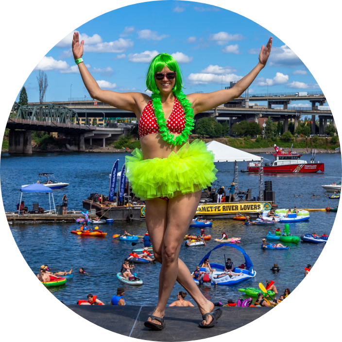 The idea behind TBF was to viscerally transform attitudes about Portland's Willamette River by creating a movement (disguised as a party) to change public perception of the river. The Big Float served as HAP’s annual fundraising event, but the party ended with our last blast - The Big Float X on July 10, 2022. Over the course of 10 years HAP brought over 25,000 people to the river through The Big Float.